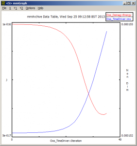 mmGraph is the scalar equivalent of mmDisp. It lets you quickly and easily view the data table output from your OOMMF simulations. In terms of functionality the plotter is quite straightward, so you’ll probably want to use separate software for producing production quality graphs.
