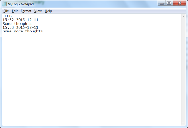 The next time you open your file, notepad will put a date and time stamp at the bottom of your file - something like this: