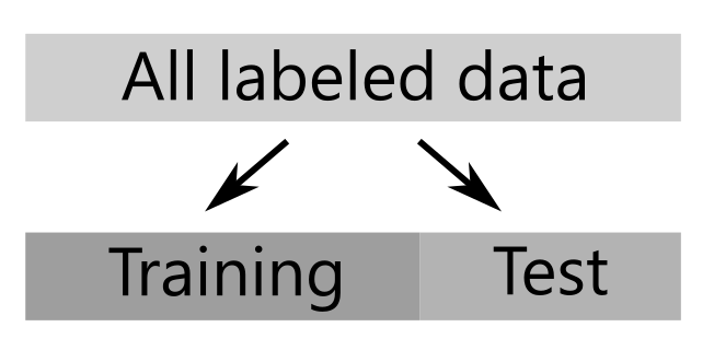 The test set is not used to train the model and can be used to give a better estimate of the model’s real world performance. The scikit-learn python package provides some useful helper functions for separating out a test set from the all the labelled data.