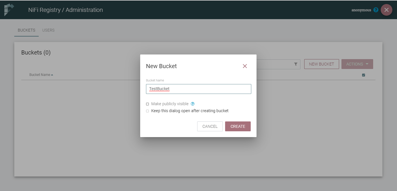 Create a New Bucket In NiFi Registry