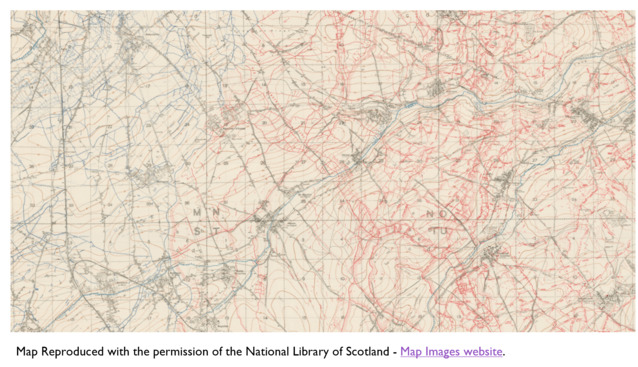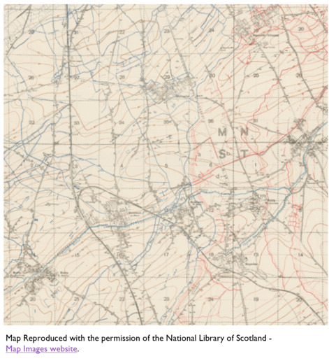 The following examples show very roughly the section of a map that a unit might be involved with, given the size of its frontage. The general idea is to get a feel from the number and scale of features that a unit engagement might involve. For a given unit, there would on all likelihood be units of similar size on either side of them, rather than them being in complete isolation. In a wartime scenario, the features indicated below could also have been altered or augmented with earthworks or other defenses and are just to give a general impression of the different scales involved.